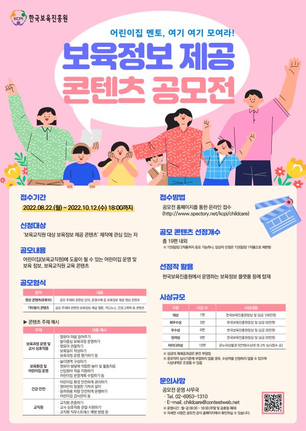 공 모 명:「어린이집 멘토, 여기여기 모여라! 보육정보 제공 콘텐츠 공모전」
