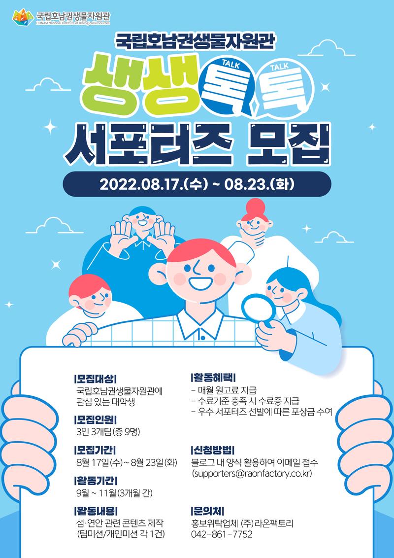 국립호남권생물자원관 생생톡톡 서포터즈 모집