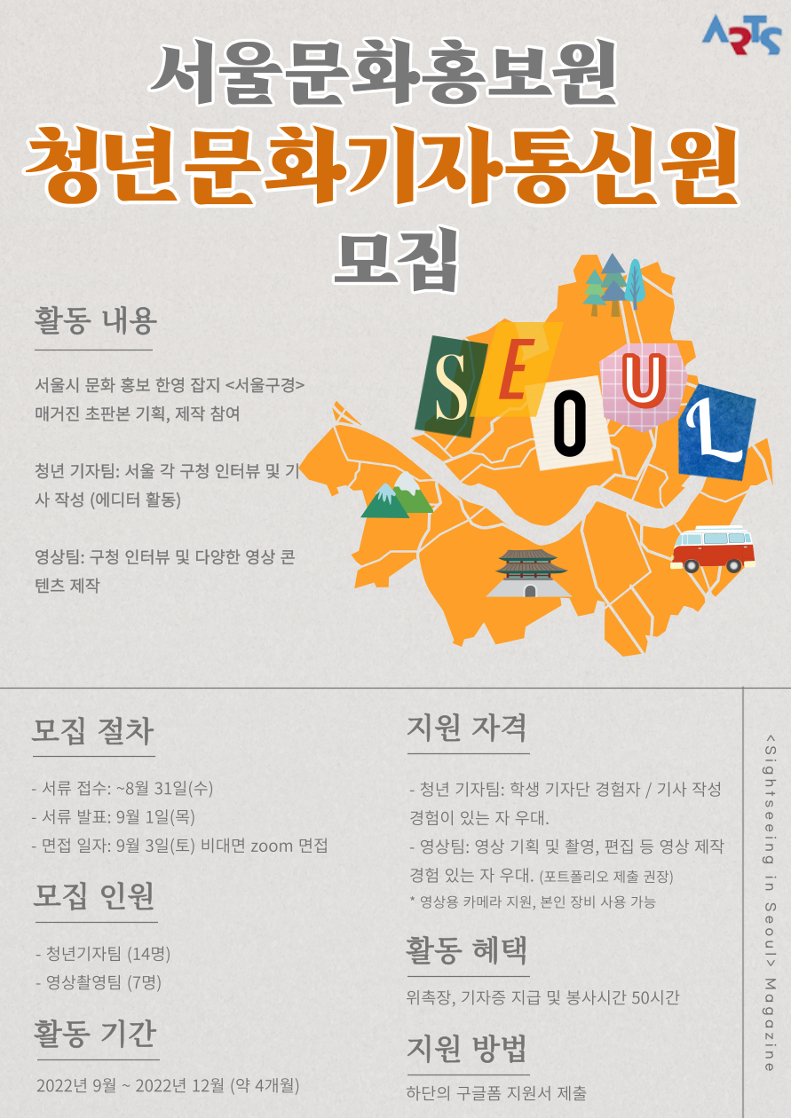 서울문화홍보원에서 청년문화기자통신원을 모집합니다.