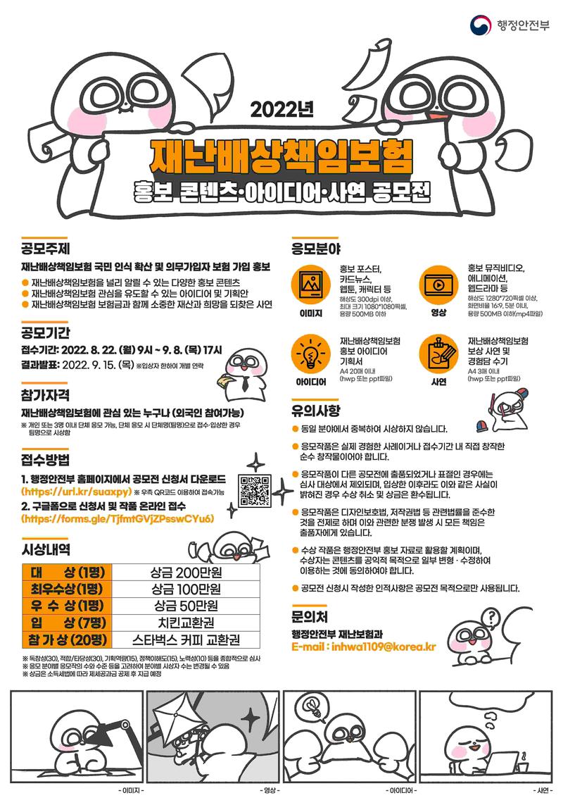 「행정안전부」2022년 재난배상책임보험 홍보 콘텐츠·아이디어·사연 공모전