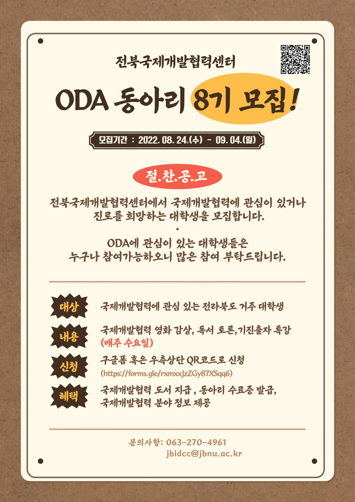 전북국제개발협력센터에서 2022 하반기 '전북지역 대학생 ODA 동아리' 동아리원을 모집합니다!