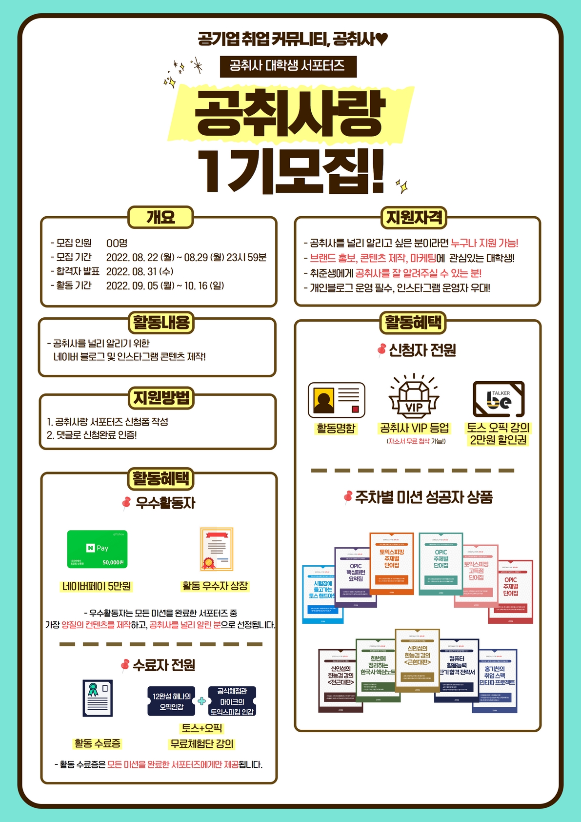 - 공취사를 널리 알리고 싶은 분이라면 누구나 지원 가능!