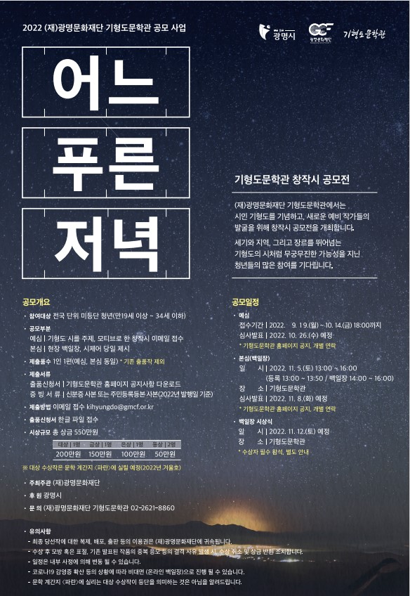 2022 (재)광명문화재단 기형도문학관 공모사업 – 창작시 공모전 ‘어느 푸른 저녁’