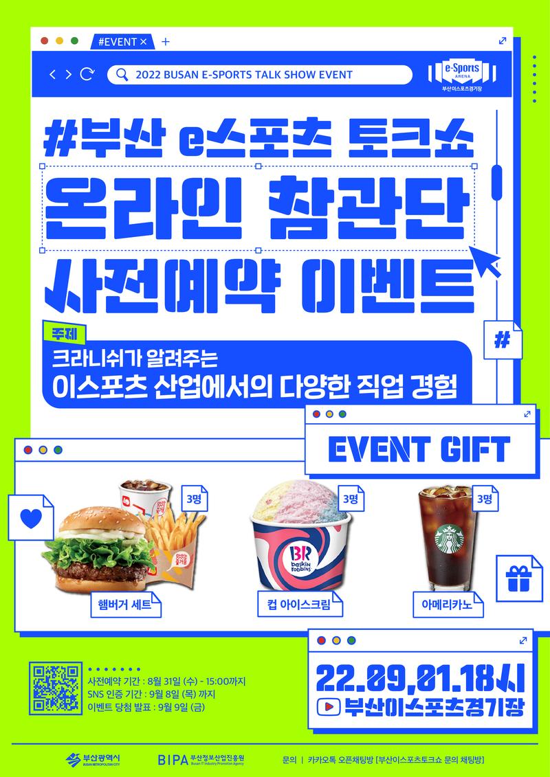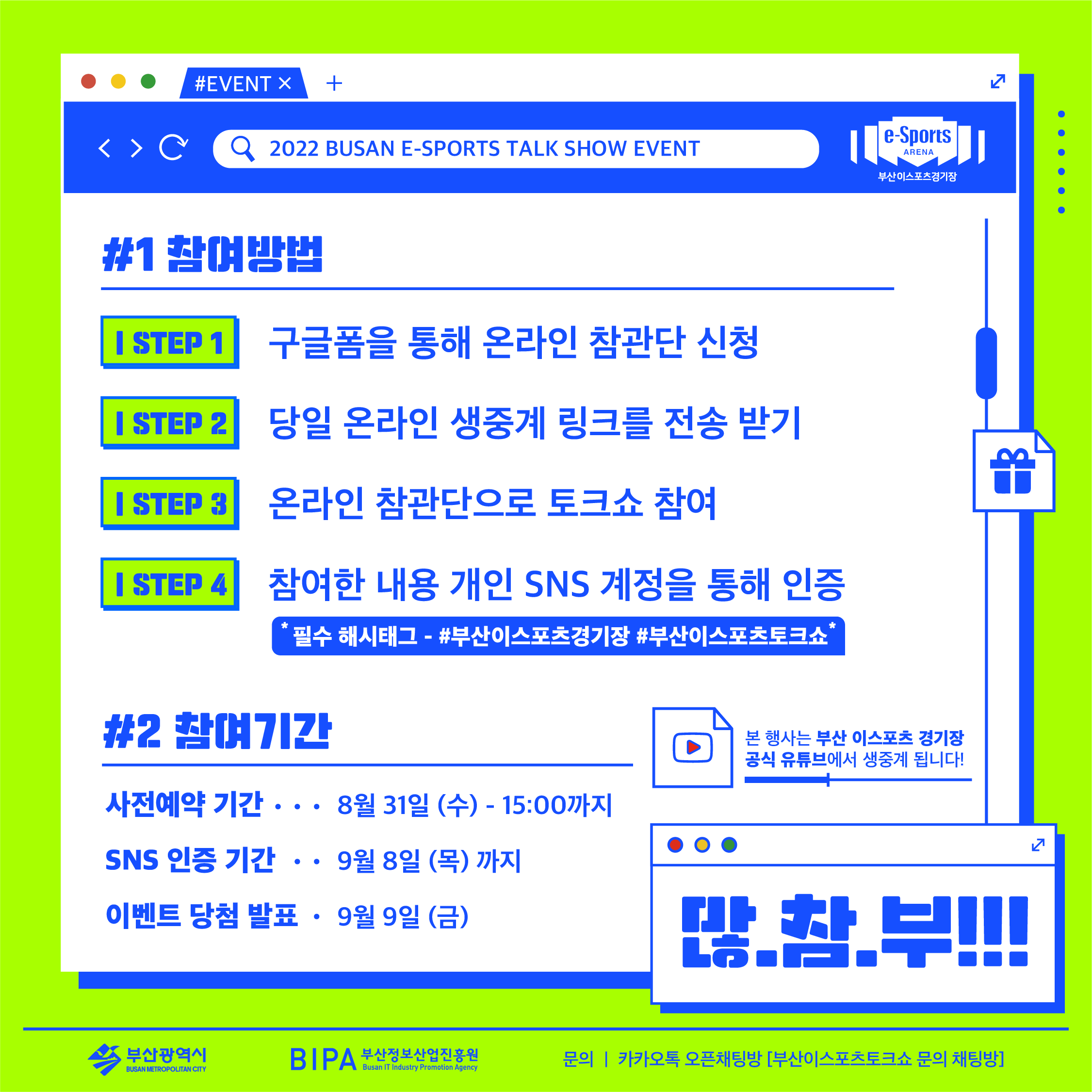 부산 e스포츠 토크쇼 온라인 참관단 이벤트에 참여하면 기프티콘까지 받을 수 있대!! 📢