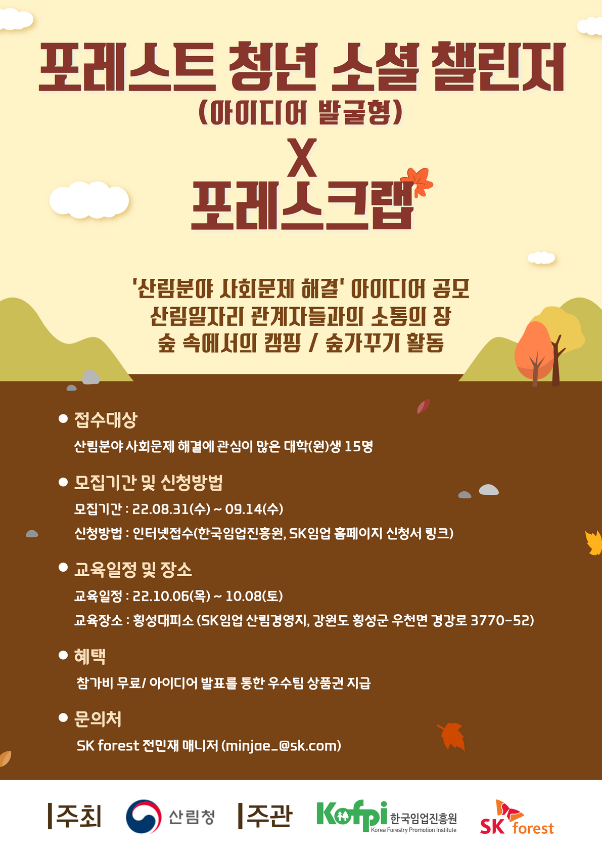 1. 모집 대상: 산림 분야 사회문제 해결에 관심이 많은 대학(원)생