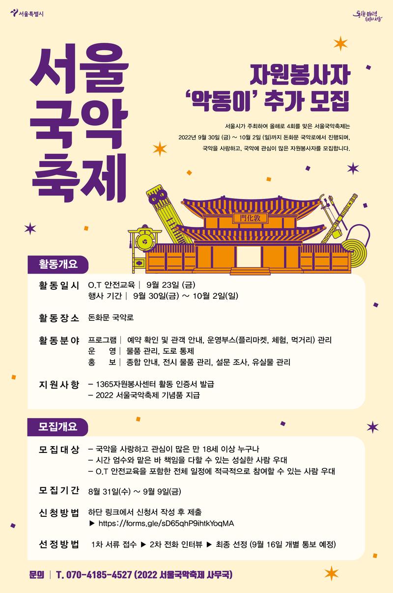 2022 서울국악축제 자원봉사자 '악동이' 추가 모집