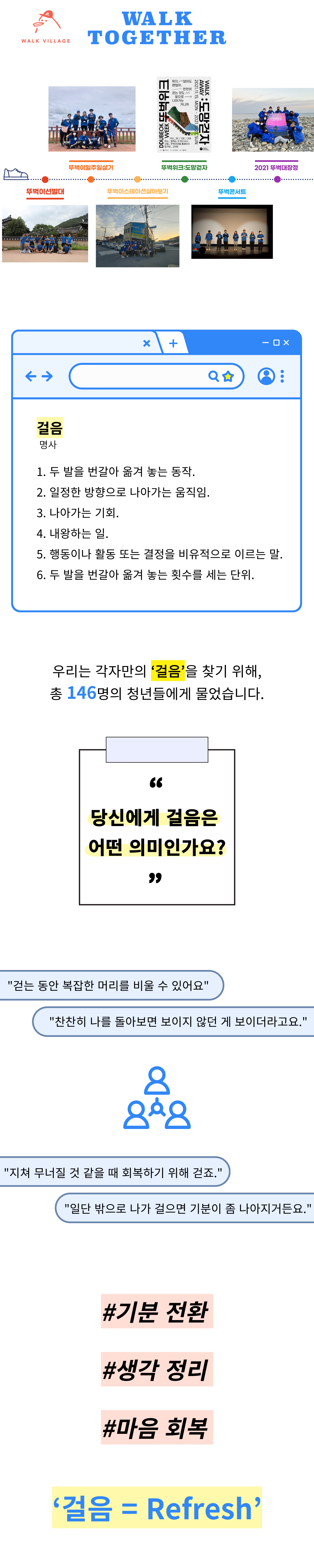 🦶 문의 : 010-3631-5520 (뚜벅이마을 운영대원) / @blue_roading / @walk_village