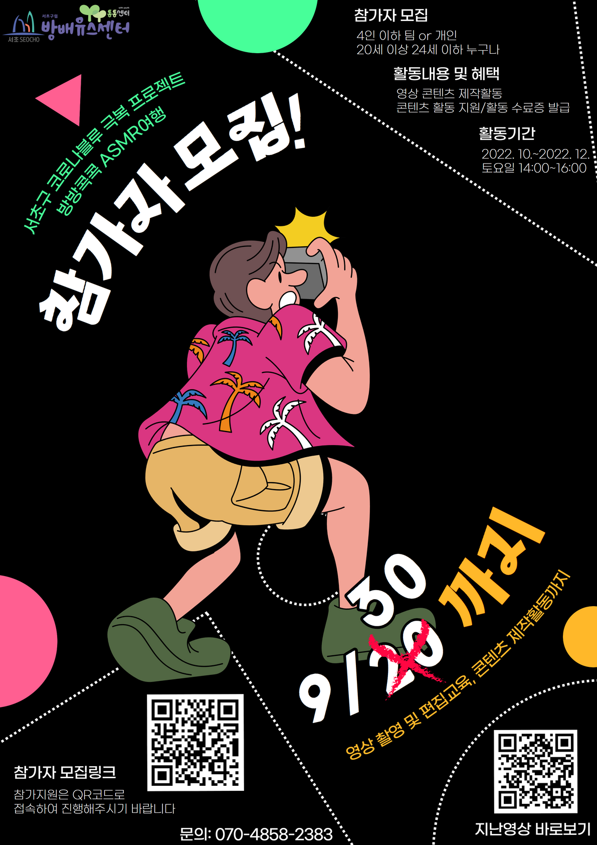 (*서초구 거주자, 영상 촬영 및 편집 가능자, 센터 활동 경험자 우대)
