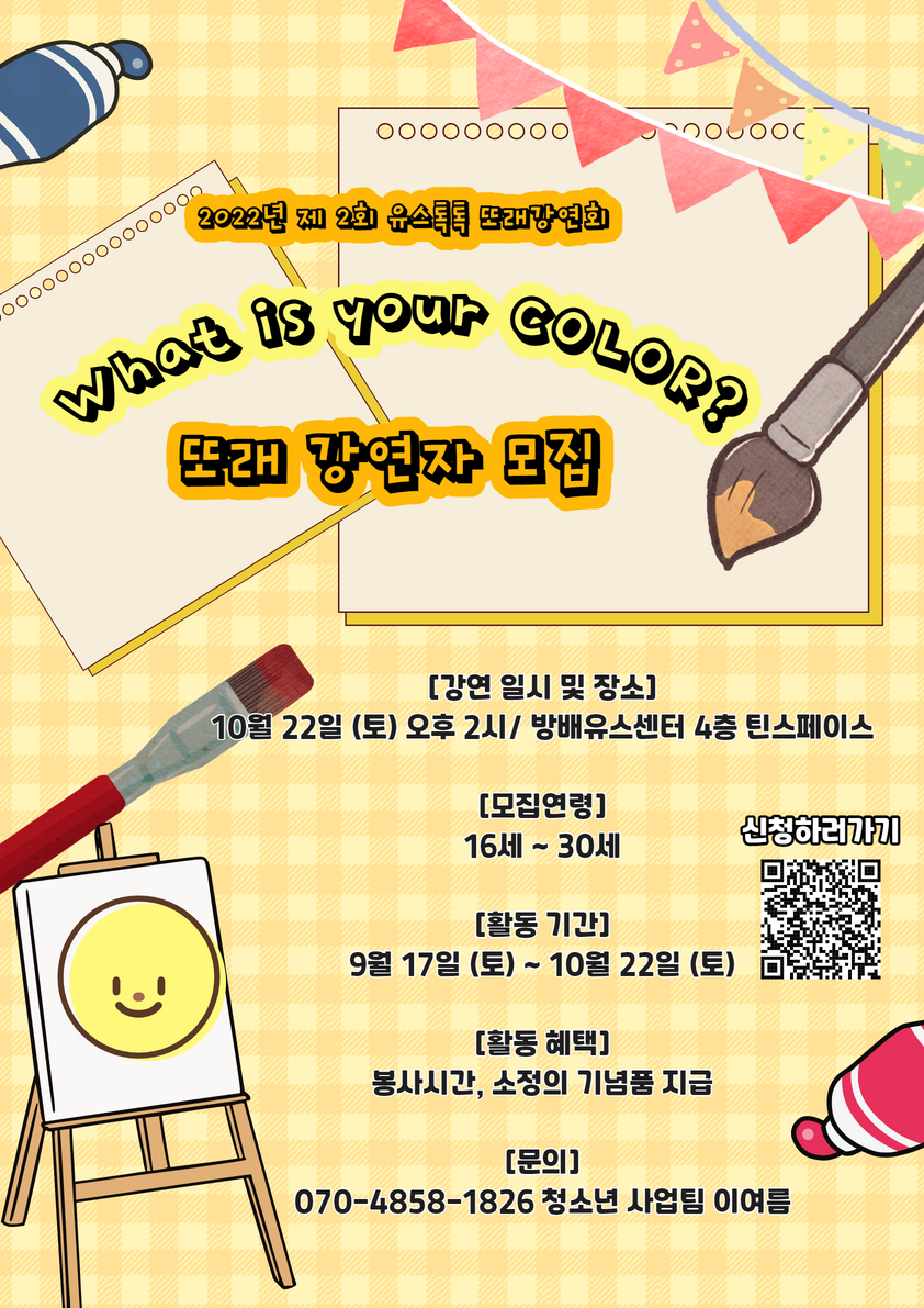 안녕하세요! 청소년 강연기획단 유스톡톡입니다(ง˙∇˙)ว