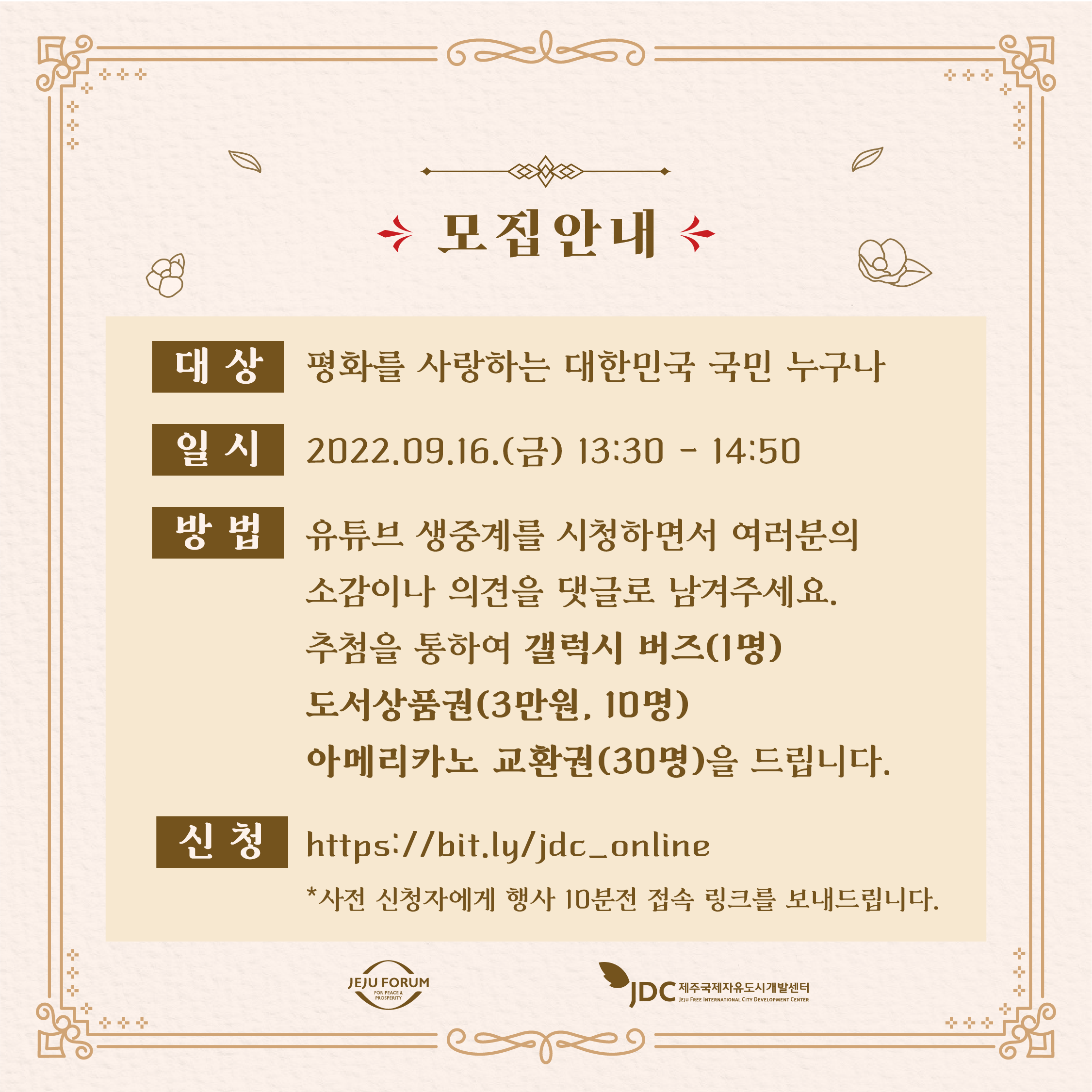 제 17회 평화와 번영을 위한 제주포럼 [JDC 노인도서관] 온라인 시청자 사전 모집