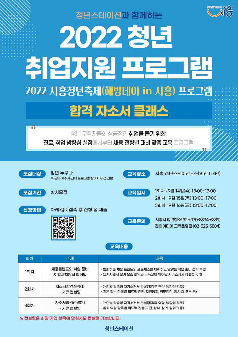 [시흥시] 청년 취업 지원 프로그램 2_서류 역량 강화 집중과정2(대면)_참가자 모집 (~9/9 (금) 선착순 모집, 참가비 무료)