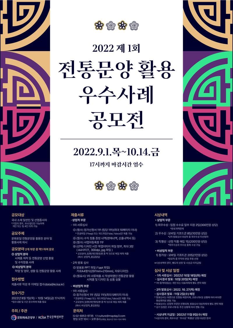 - 수상작은 수상자가 이용허락 하는 경우 전통문양 이용활성화
