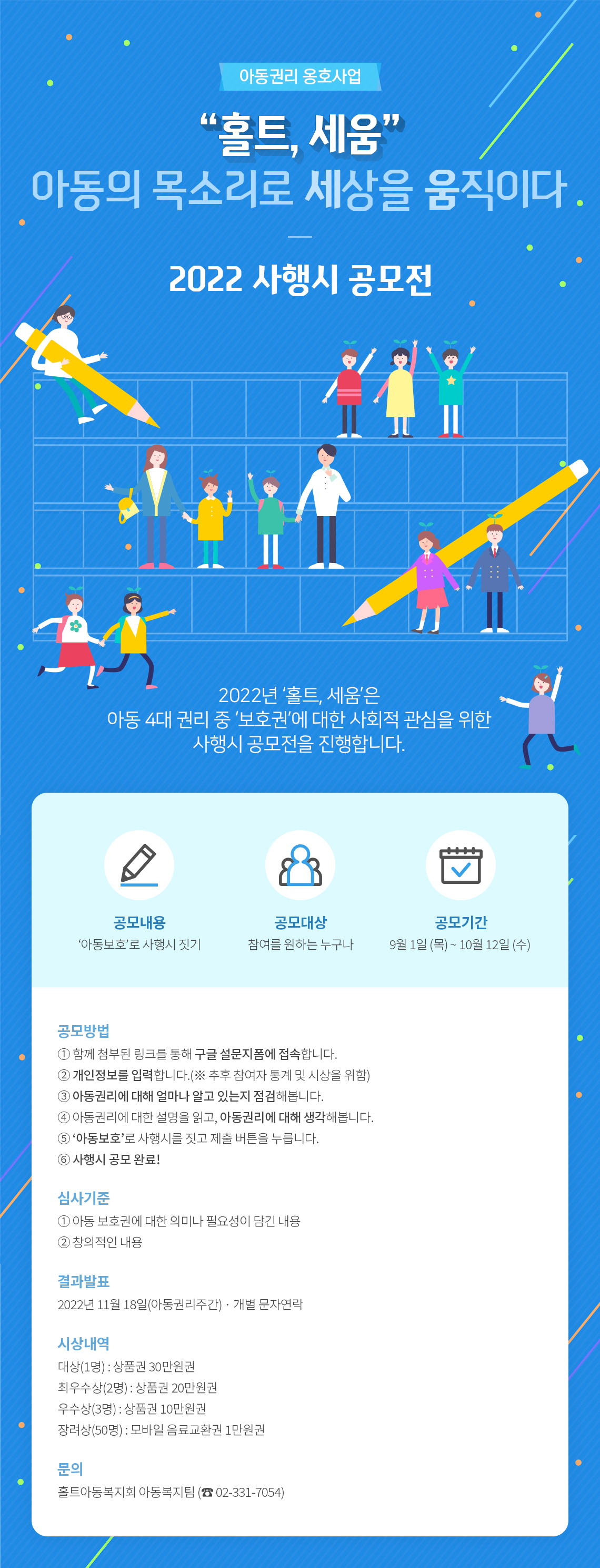 아동권리옹호사업 '홀트,세움' 2022 사행시 공모전