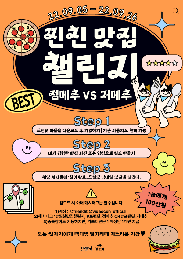2)해시태그 : #프랜딧_점메추 OR #프랜딧_저메추 | #찐친맛집챌린지