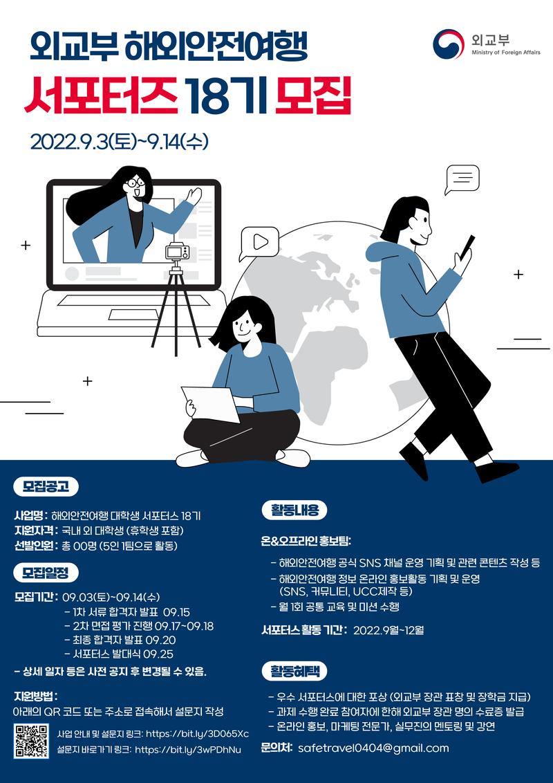 [외교부 해외안전여행 대학생 서포터스 18기 모집]