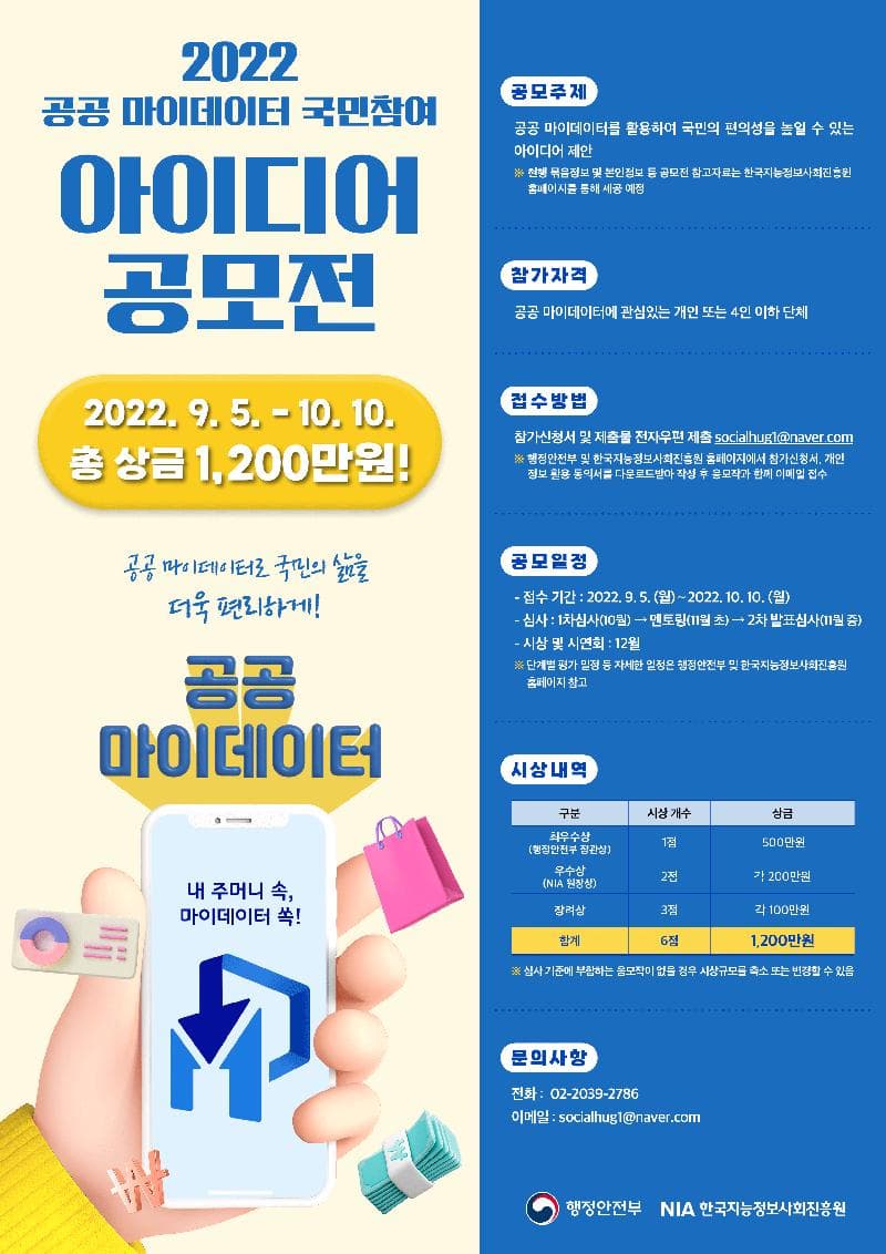 전화 : 02-2039-2786 (공공 마이데이터 아이디어 공모전 운영사무국)