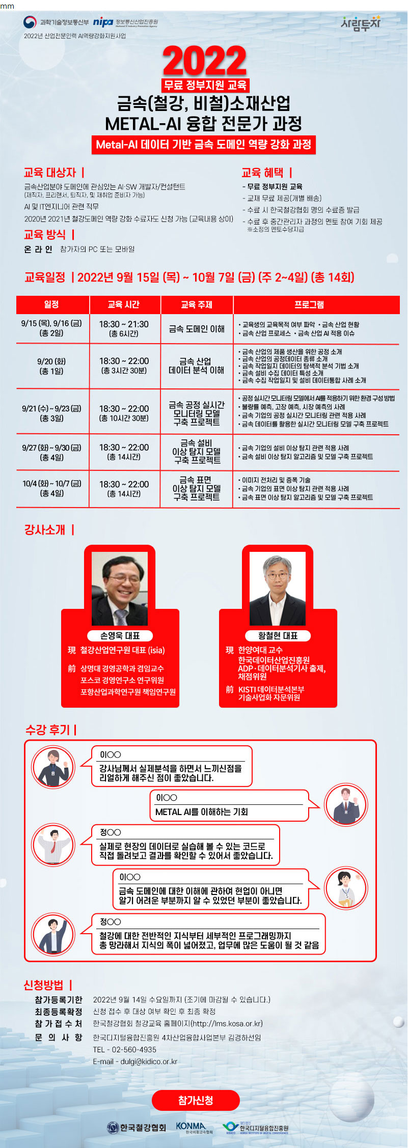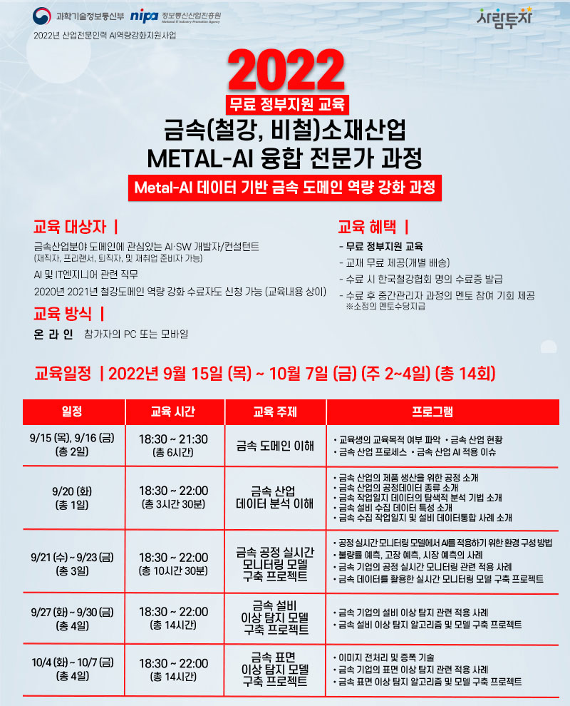 (무료 온라인 교육) 금속(철강, 비철) 소재산업 METAL-AI 융합 전문가 과정