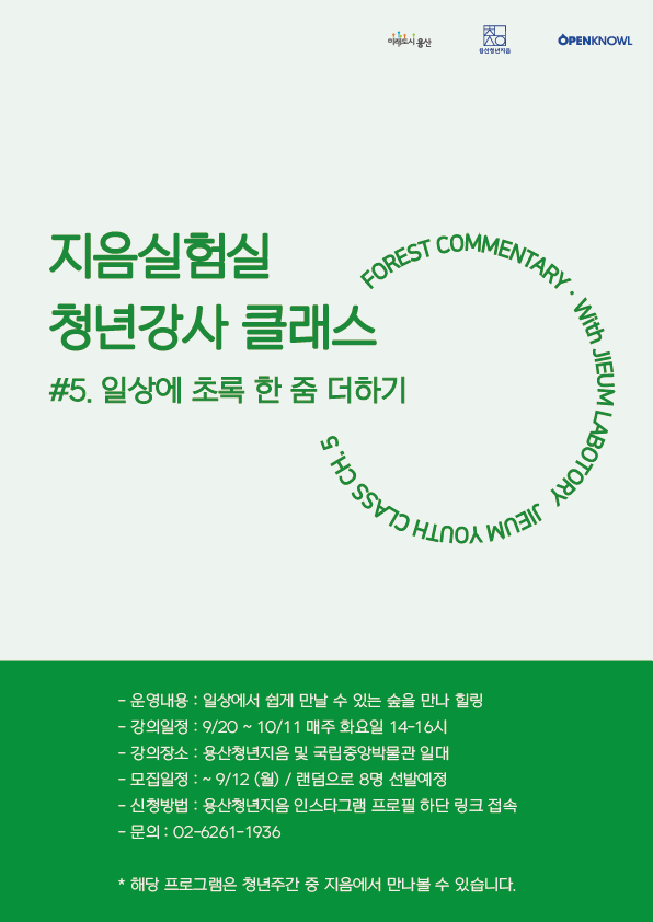 - 모집대상 : 숲, 식물과 친해지고 싶은 만 19~39세 청년