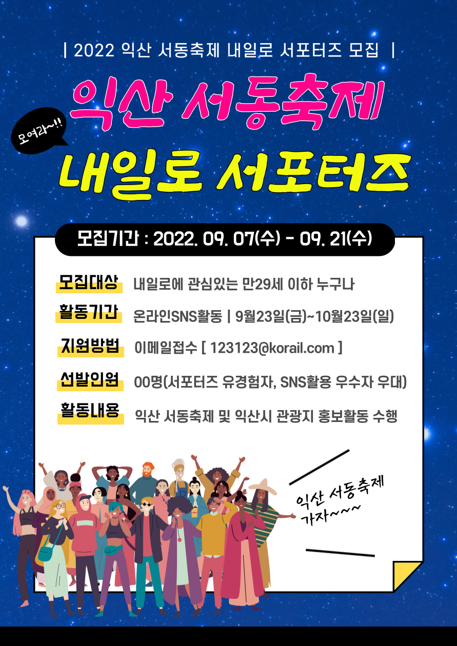 - 활동 기간 내 여행센터에서 제공하는 익산 서동축제 및 익산 한복문화주간 홍보 자료를 활용해 온라인 홍보 게시글(6건 이상) 작성
