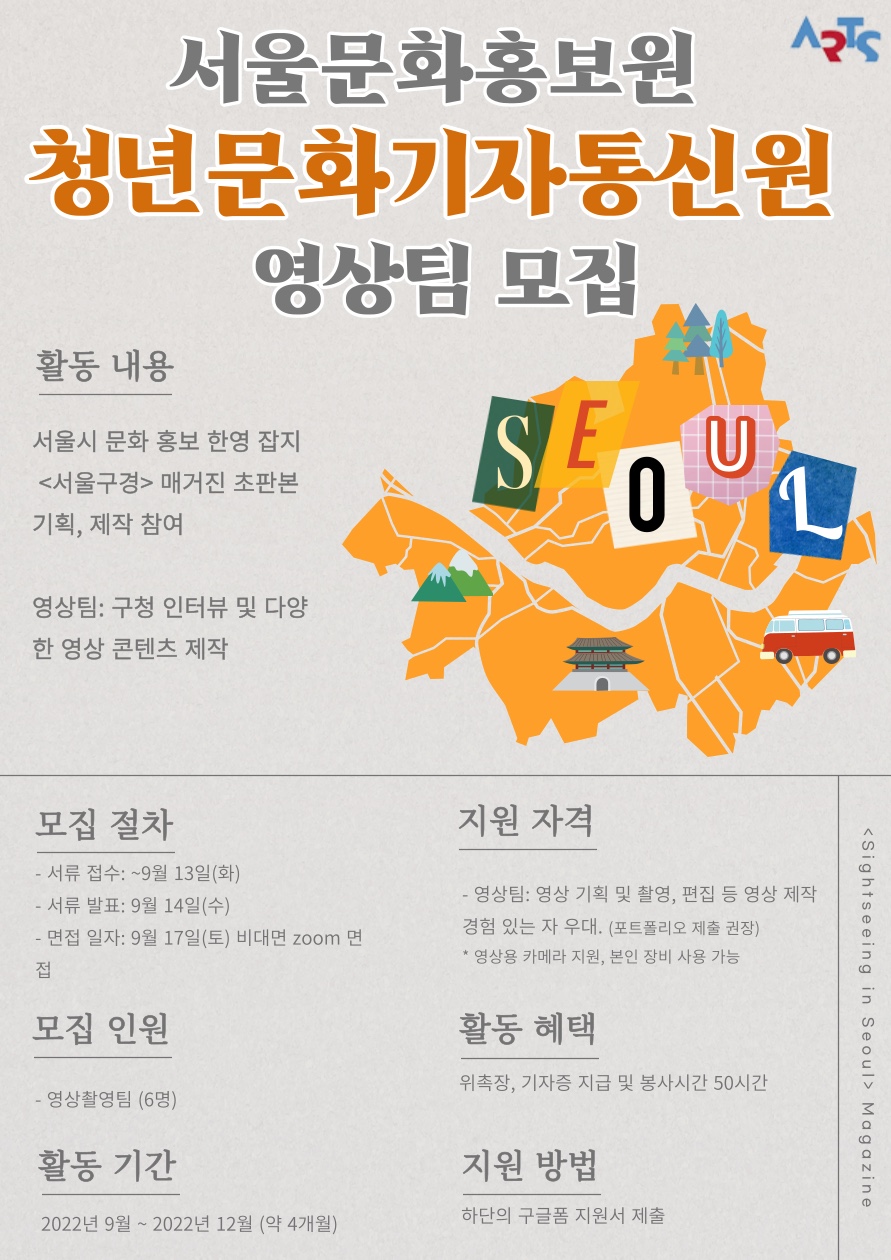 서울문화홍보원에서 청년문화기자통신원을 모집합니다.