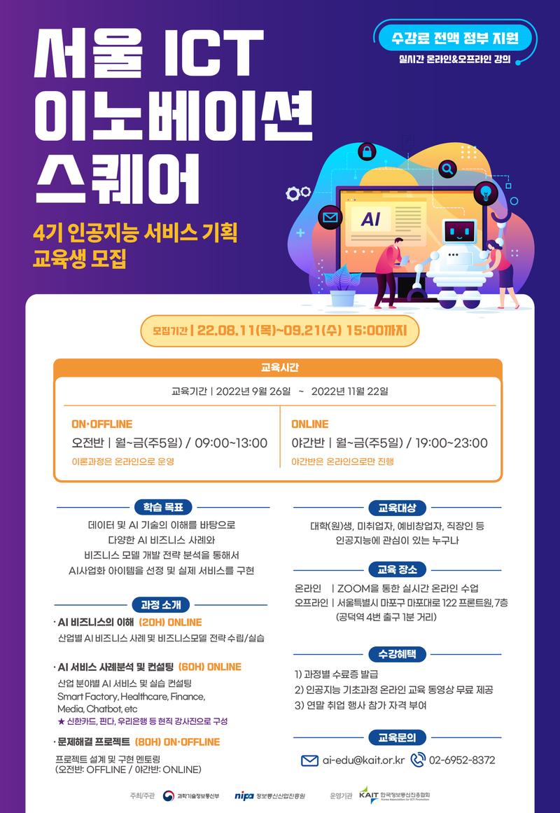[서울 ICT 이노베이션 스퀘어 22년 4기 인공지능 서비스 기획과정 교육생 모집]