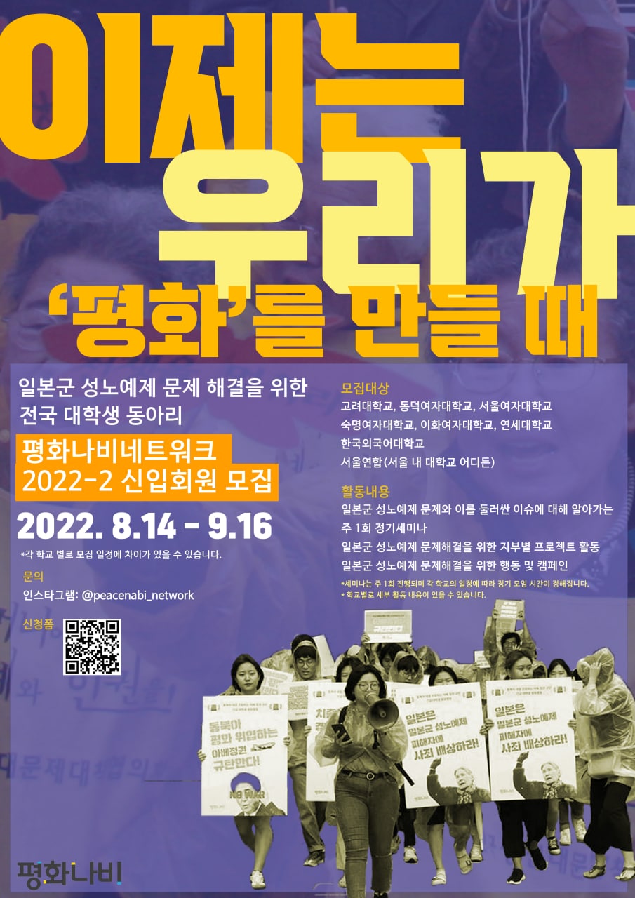 기억하고, 함께하고, 행동하는 평화나비 22-2 신입부원을 모집합니다!