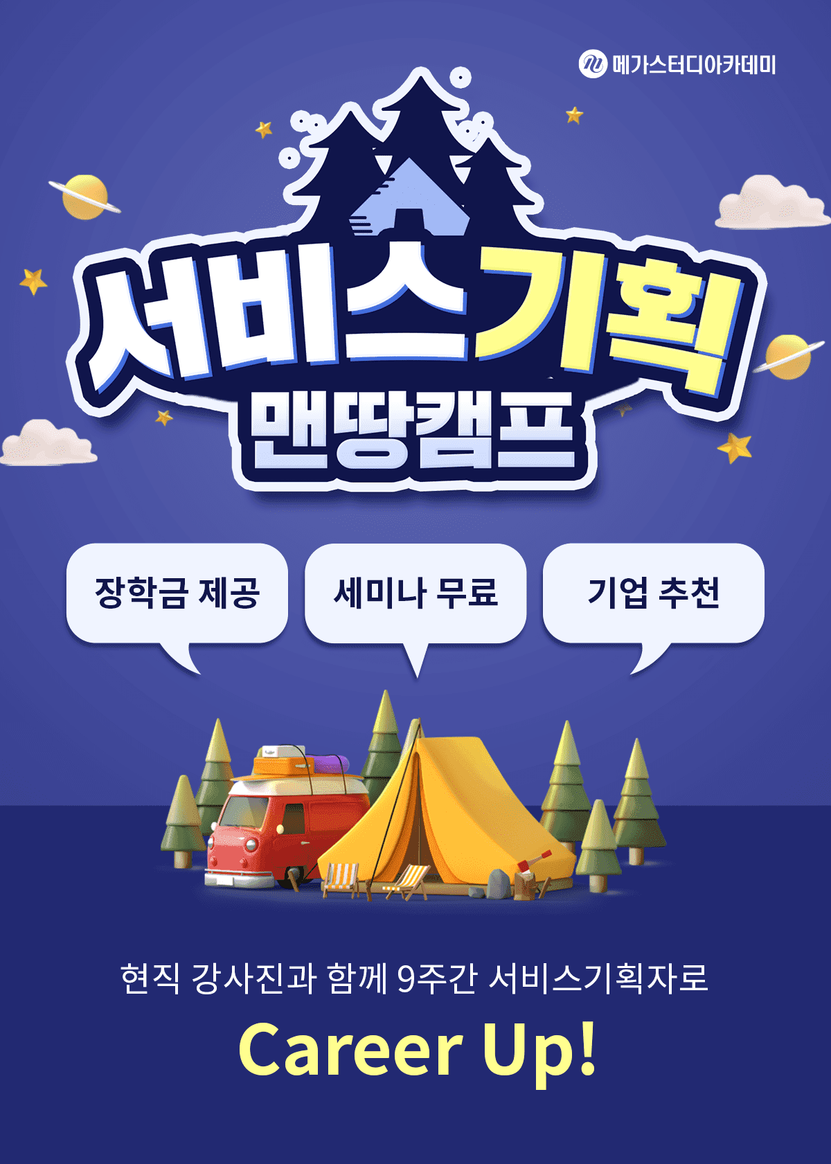 Why 메가스터디? 1) 실무 워크플로우를 반영한 커리큘럼 2) 맨땅캠프를 이끌어 갈 현업 리더그룹 3) 경력이 없어도 합격하는 포트폴리오