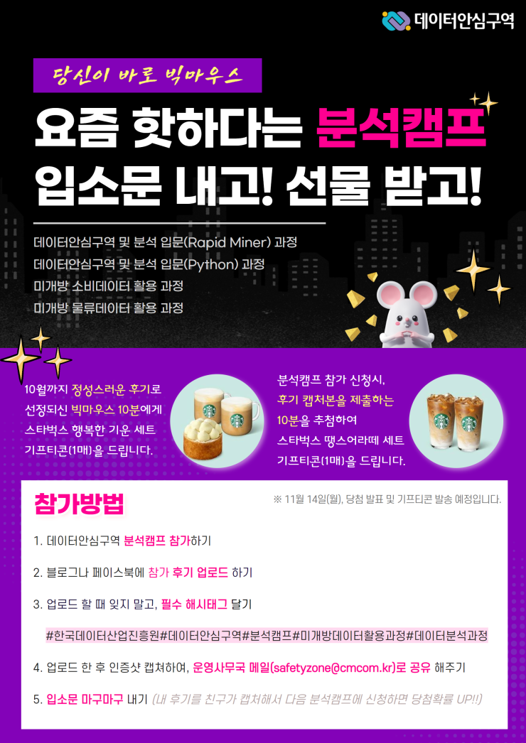 * 데이터안심구역 및 분석입문 과정, 미개방데이터 활용 과정 참가자 모두 가능해요 (신청 롸~잇~나~우~📢)