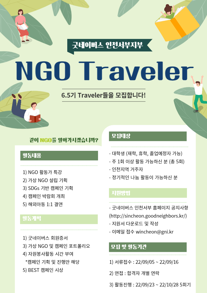 굿네이버스 인천서부지부에서 NGO Traveler 6.5기를 모집합니다!
