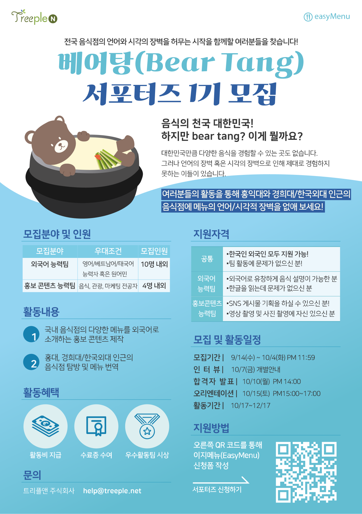 전국 음식점의 언어와 시각의 장벽을 허무는 시작을 함께할 여러분들을 찾습니다!