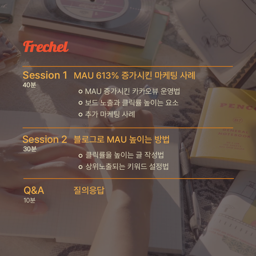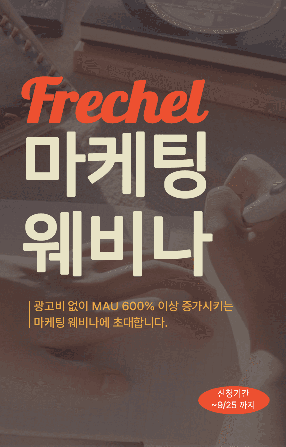 빠르게 성장하는 마케터가 되고 싶은 손님을 위해 광고비 없이 MAU 증가시키는 마케팅 방법을 프래첼 웨비나에서 이야기하려고 합니다.