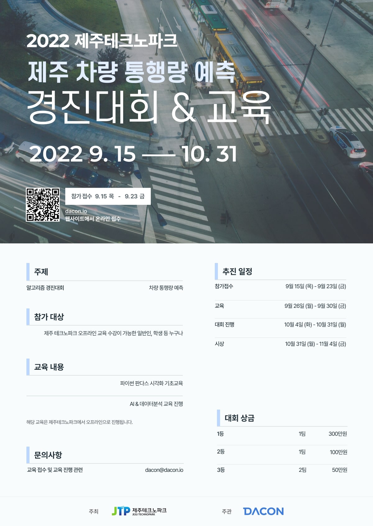 [제주테크노파크, 데이콘] 제주도 차량 통행량 예측 AI 교육 & 경진대회 (선착순 모집 ~9/23)