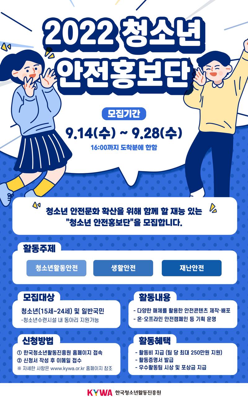 [한국청소년활동진흥원] "2022년 청소년 안전홍보단" 모집 (~9.28수)