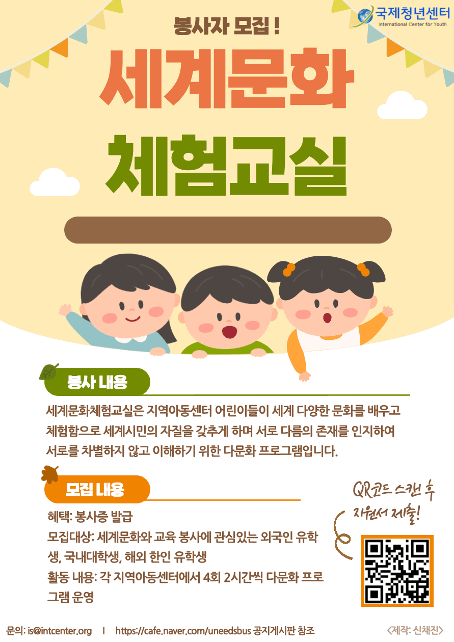 * 모집대상: 세계문화와 교육봉사에 관심 있는 국내 대학생 및 외국인 유학생(휴학생 가능)