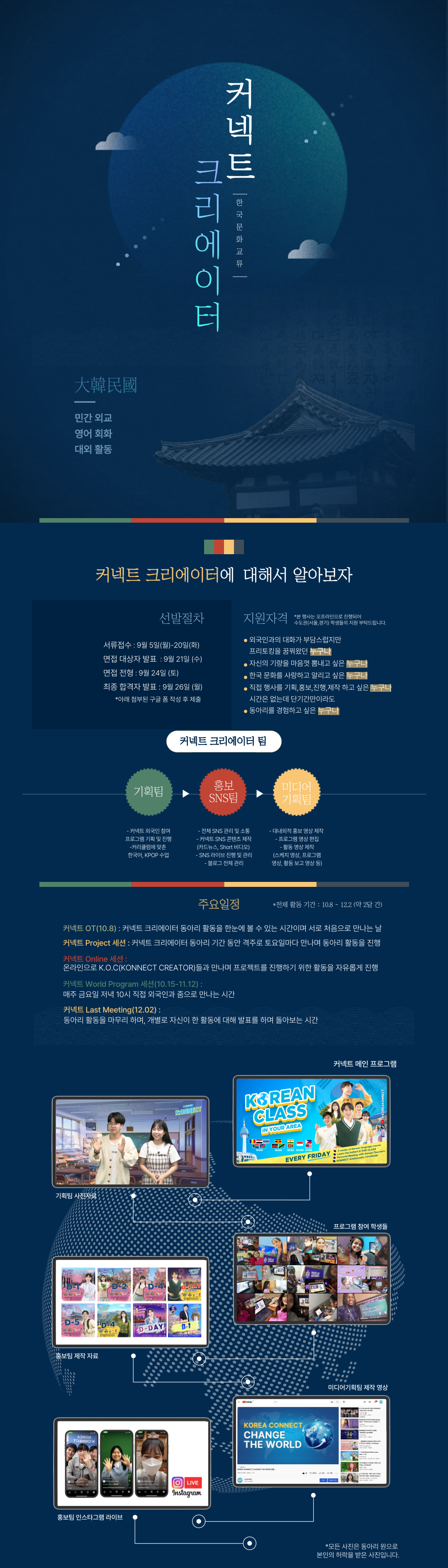 커넥트 크리에이터는 대학생에 의해 자취적으로 운행되며 정치, 종교, 시민 단체와 전혀 관련이 없습니다.