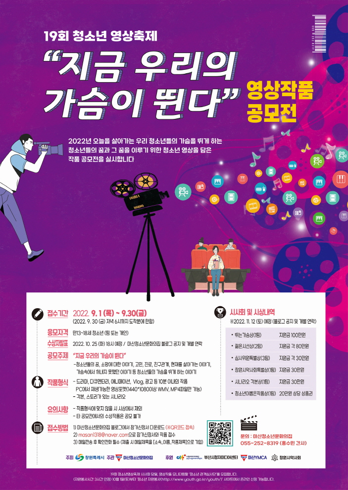 행사명: 19회 청소년 영상축제 "지금 우리의 가슴이 뛴다." 영상작품 공모전