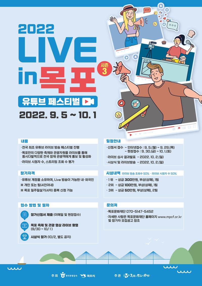-'2022 라이브 in 목포 시즌3' 유튜브페스티벌 참가자를 모집합니다.
