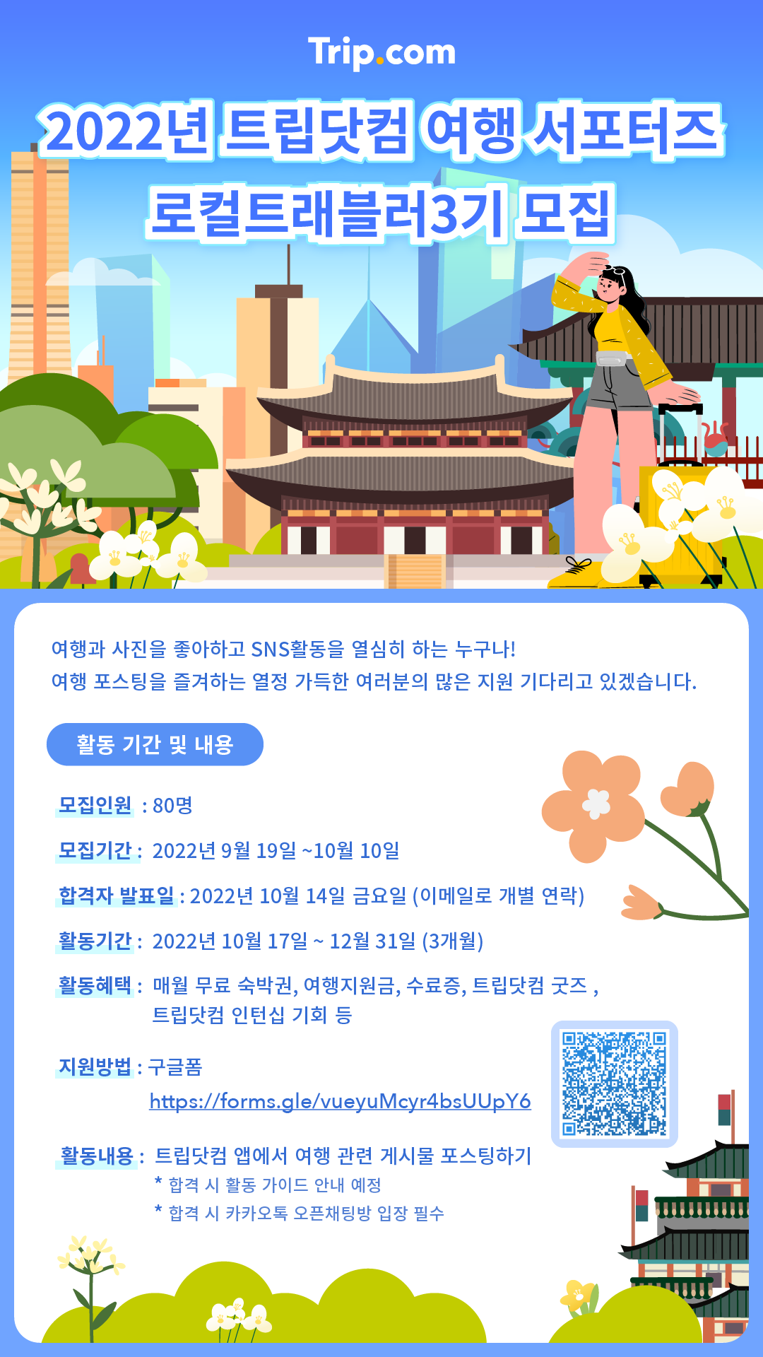 ※ 카카오톡 오픈채팅방 내에서 악의적이거나 불쾌한 행동을 할 경우, 트립닷컴 로컬 트래블러 자격이 박탈될 수 있습니다.