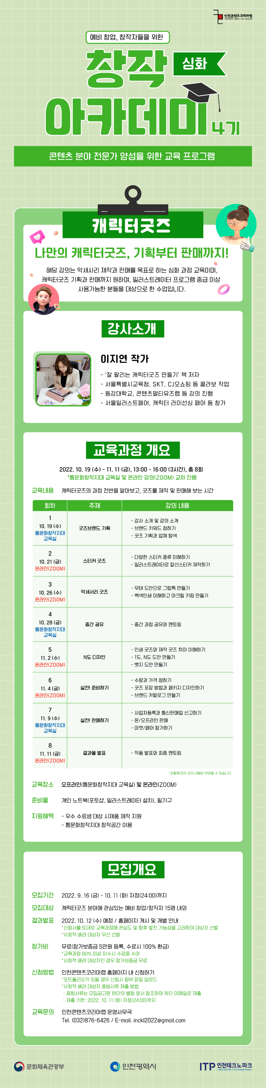 - 캐릭터굿즈: https://www.inckl.or.kr/user/program/view.do?prgrm_ifmt_sq=523&search=