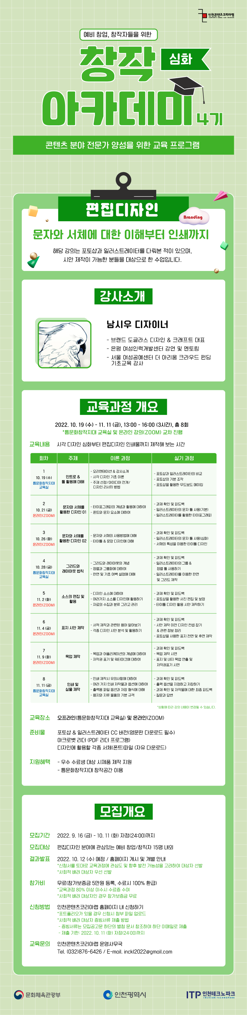 - 편집디자인: 9/16(금) ~ 10/11(화) 자정