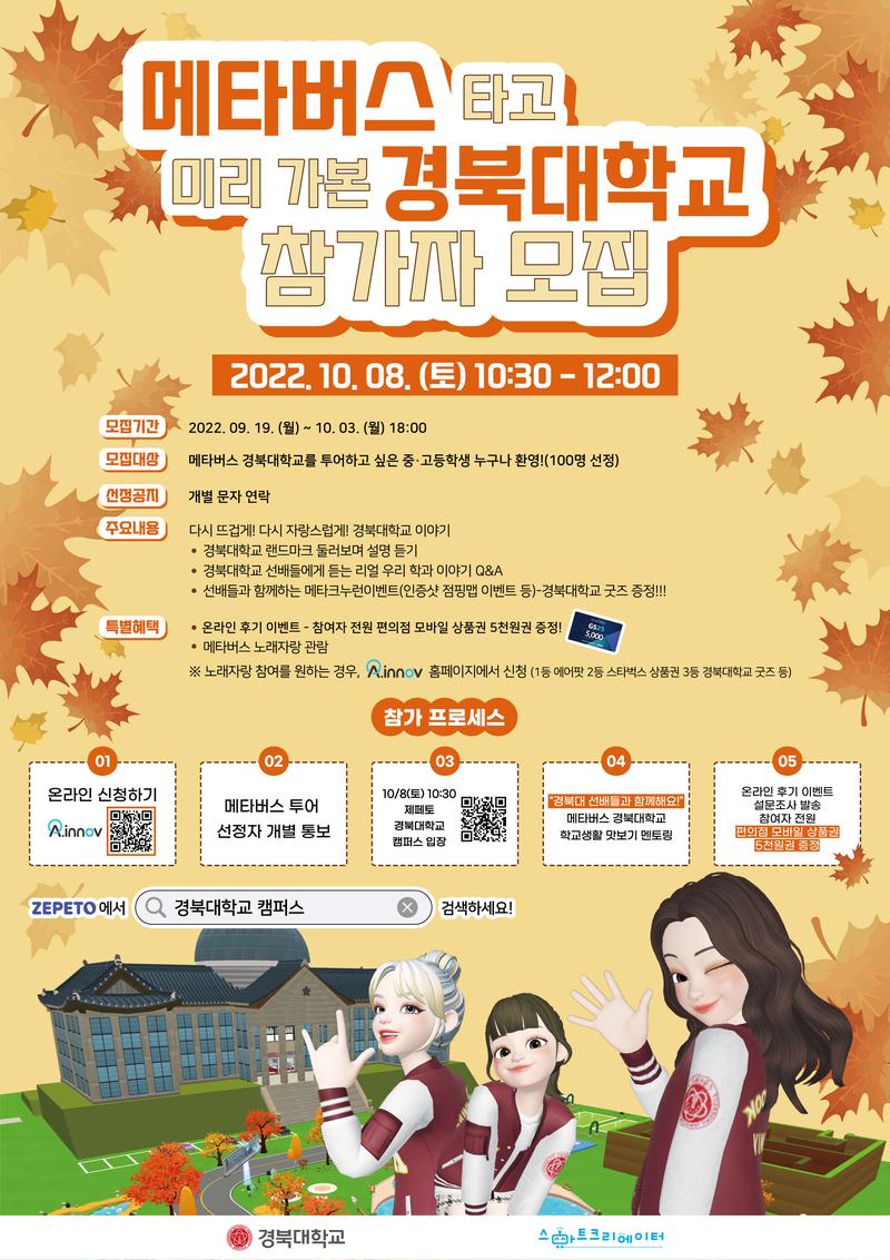 메타버스 경북대학교를 투어하고 싶은 중·고등학생 누구나 환영!(100명 선정)