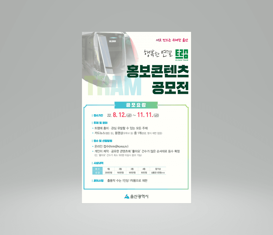 공고문 (울산 트램 홍보콘텐츠 공모전)-220811