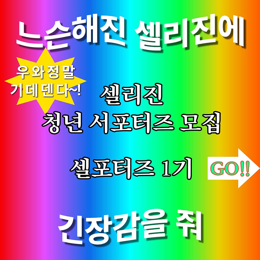 ⚠유의사항⚠ ※ 서포터즈 활동 시 제작된 결과물들은 PMWGLOBAL에 소속되며 홍보 목적의 마케팅 용도로 사용 및 재가공 될 수 있습니다. ※ 서포터즈 활동은 부산(본사 위치)에서 진행됩니다. ※ 본 서포터즈 활동은 당사의 사정에 따라 예고 없이 변경되거나 조기 종료될 수 있습니다. ※ 모든 일정은 당사 사정에 의해 변경될 수 있습니다. ※ 서포터즈 지원 시 반드시 개인 정보(성명, 성별, 연락처, 주소 등) 다시 한번 확인해 주시기 바랍니다. ※ 신청 서류에 허위 사실을 기재한 경우 선정 취소 및 활동 중지될 수 있습니다. ※ 합격자를 제외한 나머지 지원자들의 정보는 선발 완료 후 모두 폐기될 예정입니다. ※ 발대식의 경우 불참 시 셀리진 청년 서포터즈 활동이 취소될 수 있습니다. ※ 셀리진 청년 서포터즈 선정 후 미션 활동 성실히 수행하지 않을 경우 내부 규정에 의해 선정이 취소 될 수 있습니다. ※대외활동 계정, 이벤트 및 비공개 계정은 선정에서 제외됩니다.