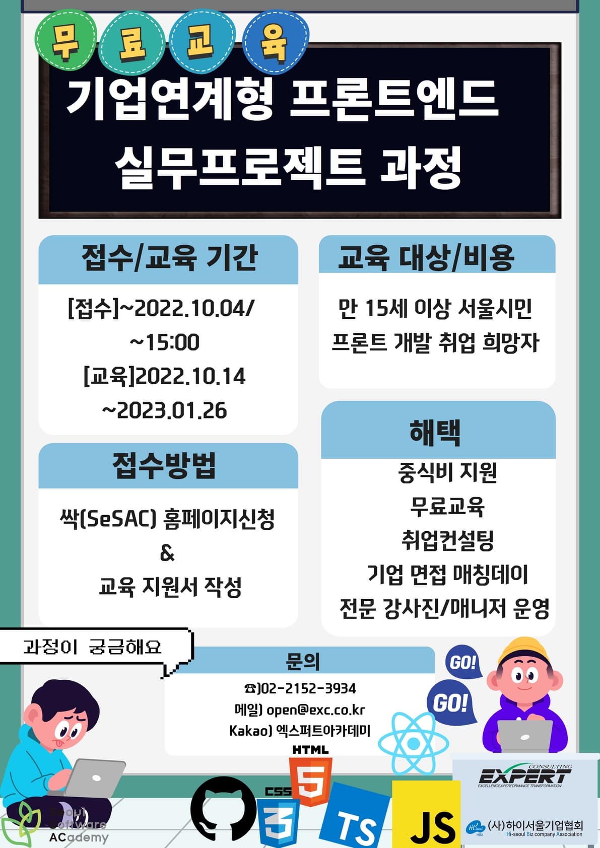 ●문의 ≫ 02-2152-3934 ≫ open@exc.co.kr** ≫ 카카오톡:엑스퍼트아카데미