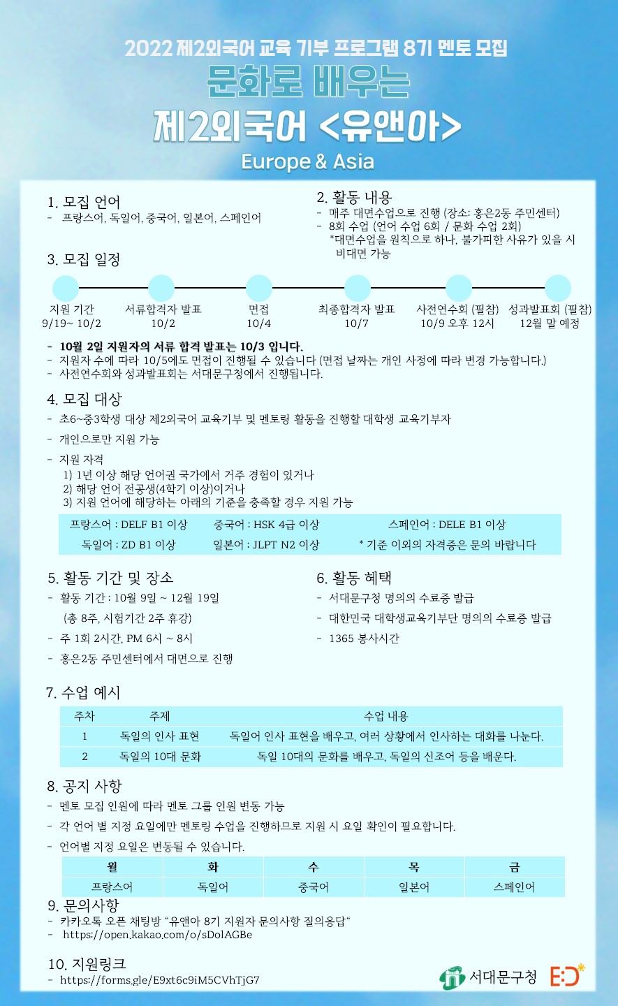 🌏제2외국어 교육기부 프로그램 '문화로 배우는 <유앤아> EUrope & Asia' 8기 멘토 모집🌏