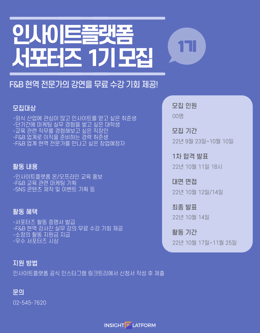 인사이트플랫폼에서 인플 서포터즈 1기를 모집합니다!