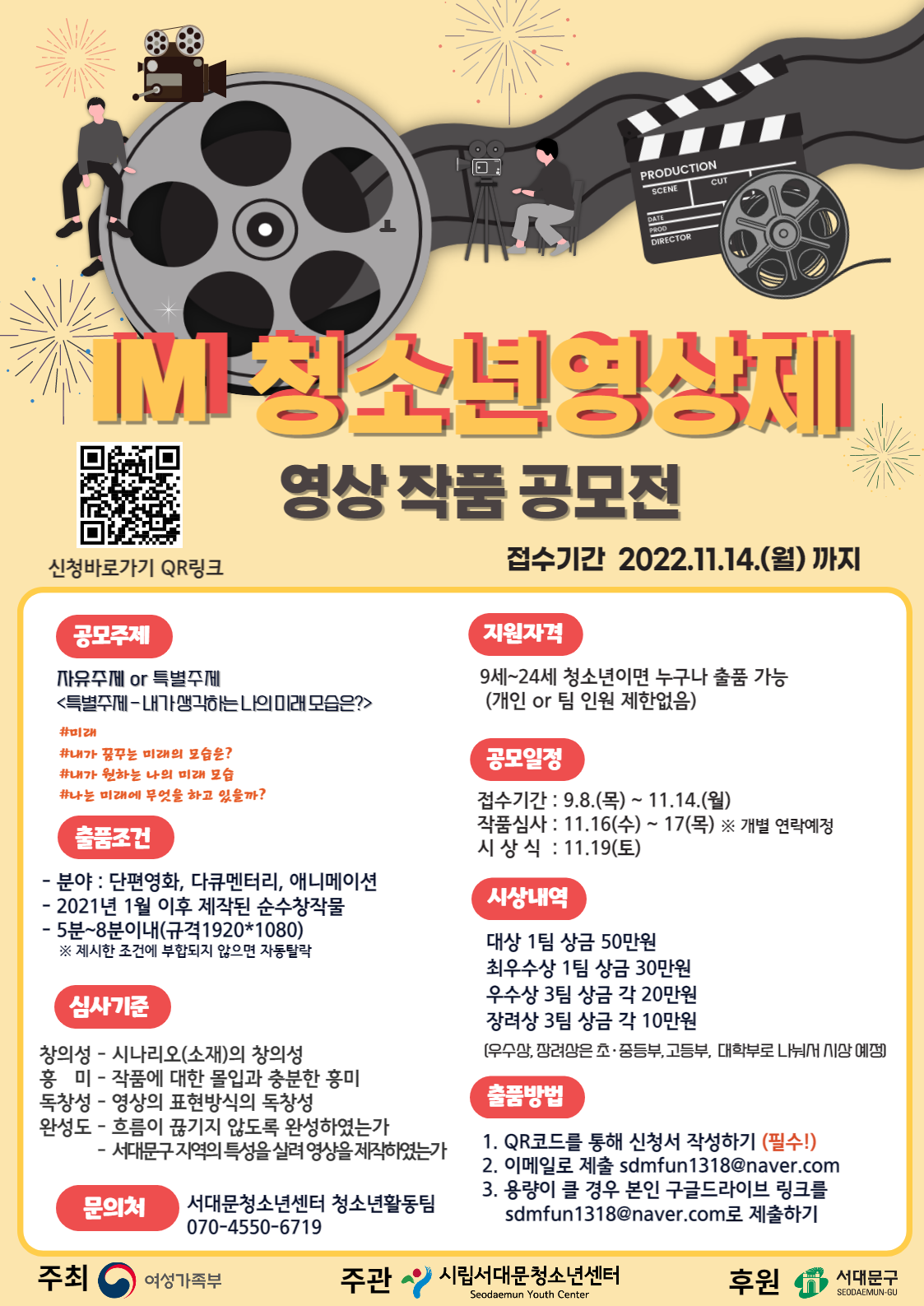 ● 문의 전화 : 070-4550-6719 (청소년활동팀) 이메일: sdmfun1318@naver.com