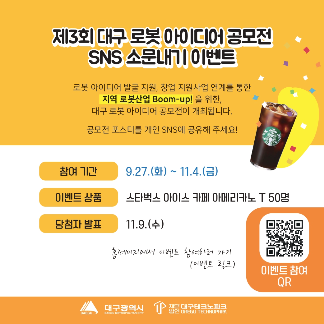 제3회 대구 로봇 아이디어 공모전 소문내기 이벤트 (\~11/4)