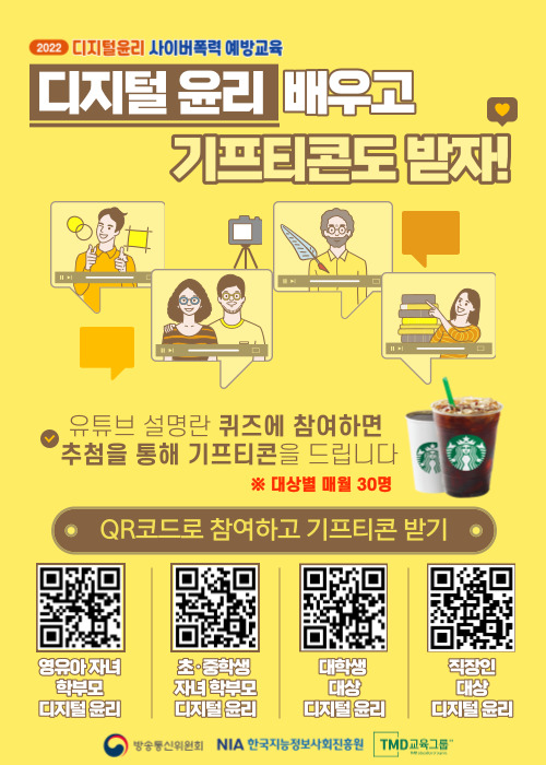 4가지 대상을 위한 디지털윤리 교육영상을 시청하고 퀴즈도 푸는 이벤트를 진행하고 있습니다.