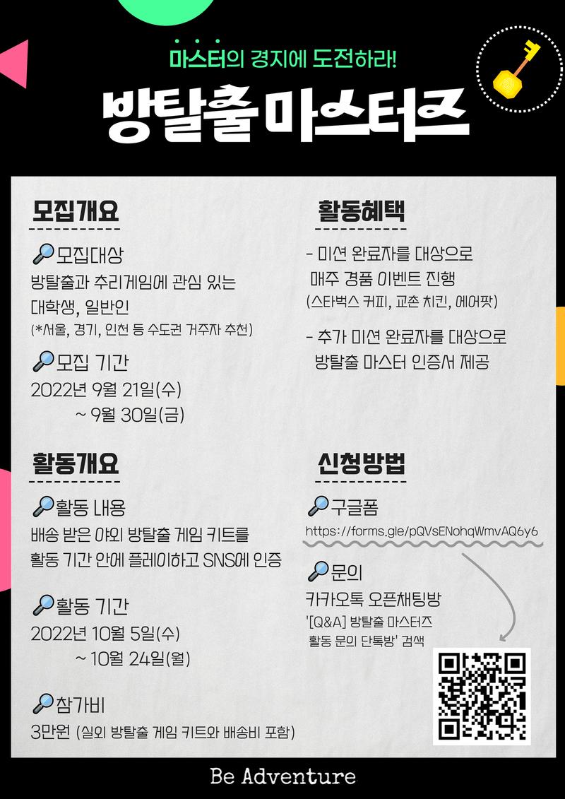 ■ 문의처 카카오톡 오픈채팅방 '[Q&A] 방탈출 마스터즈 활동 문의 단톡방' https://open.kakao.com/o/gZcolPCe